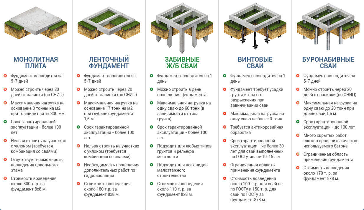 Сравнение фундамента на забивных железобетонных сваях в Сходне